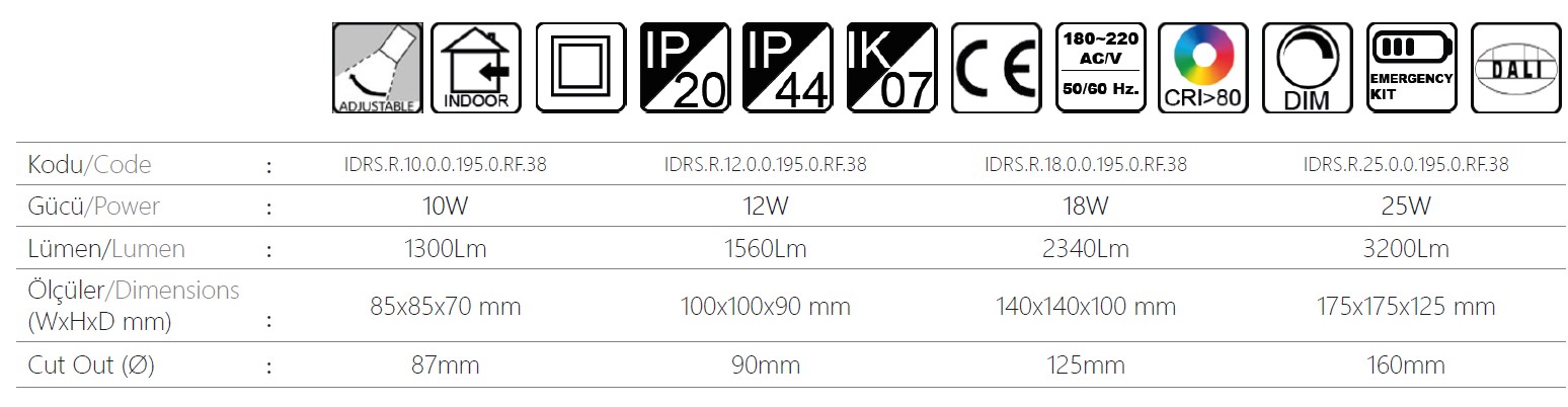 BRANCO, kare dizayn edilmiş, kademeli, oynar başlı alüminyum enjeksiyon bir COB led downlight’ tır. Oynar baş aydınlatmak istediğiniz bölgelere yönlendirme sağlamaktadır. Yüksek tavanlarda ve özellikle aydınlatılmasını istediğimiz nokta yerlerin aydınlatılmasında ideal bir üründür. Açılı reflektör zemini daha iyi aydınlatır.