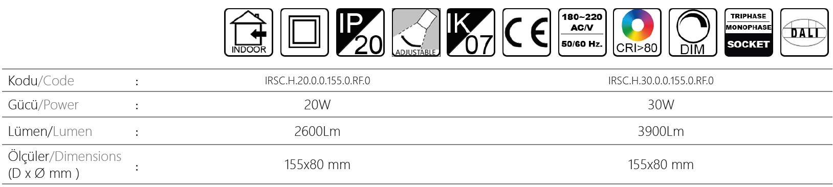 Rafine tasarımları estetik olarak çok çeşitli kullanımlara hitap eder ve silindirik şekilli gövdesi 160 mm’den daha kısadır ve alanınıza uyacak şekilde hem siyah hem de beyaz olarak mevcuttur. 3 fazlı ve monofaze raylar için ray spot armatürü. 350° dönebilir ve 180° eğilebilir. Alternatif olarak, optimum fiyat-performans oranı ve CRI> 90 ile en yüksek enerji verimliliği.