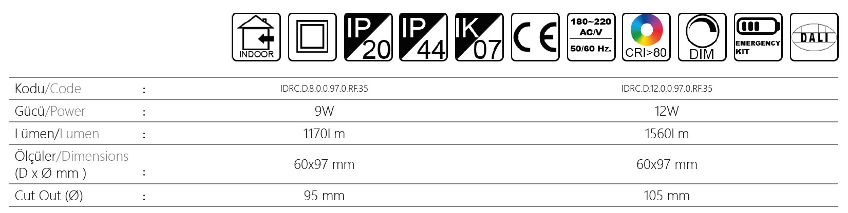 Düşük watt’ ta yüksek lümen gücü ile her mekanda ferah bir aydınlatma ortamı sağlamaktadır. SANTO özel dekorasyon tercih eden mimarlar için için mükemmel bir downlight’tır.